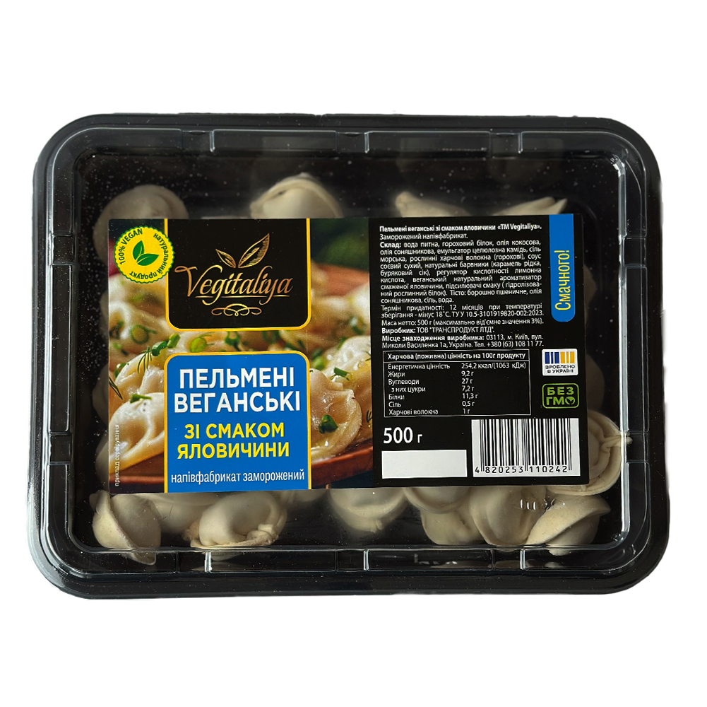 Веганські пельмені смак «Яловичина»  ТМ Vegitaliya — це унікальний продукт для тих, хто прагне поєднати у своєму раціоні традиційний смак та користь рослинного харчування. Ці пельмені дозволяють насолоджуватися улюбленими стравами без компромісів щодо здоров'я та етичних переконань. Вони створені з дбайливо підібраних інгредієнтів, які максимально точно відтворюють смак і текстуру яловичини, але при цьому не містять жодних продуктів тваринного походження.