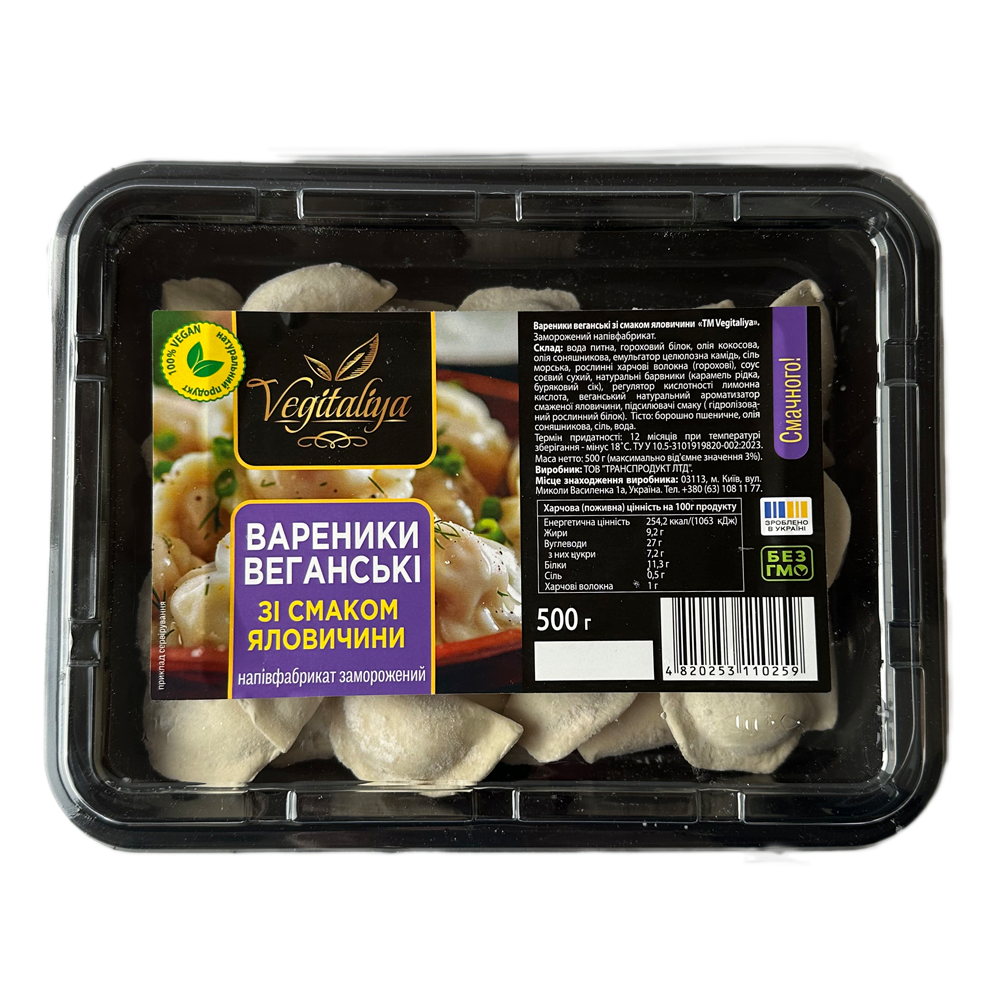 Вареники веганські зі смаком "Яловичина" ТМ Vegitaliya — це справжній прорив у світі рослинного харчування, який дозволяє насолоджуватися звичними смаками без шкоди для здоров'я і довкілля. Цей продукт спеціально розроблений для тих, хто відмовляється від м'яса, але не готовий відмовитися від його смакових якостей. Завдяки використанню інноваційних технологій та натуральних рослинних інгредієнтів, веганські вареники з яловичиною мають смак та текстуру, що практично не відрізняються від традиційної м'ясної начинки.